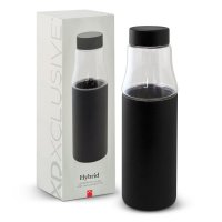 Exceptional 500ml Borosilicate glass hybrid and stainless steel vacuum bottle from XD Design which has a secure screw on lid. The stainless steel outer provides additional insulation, maintaining drink temperatures for longer and ensuring the bottle remains comfortable to hold. The black and white bottles laser engrave to a shiny steel finish and the silver bottle engraves to a natural etch. Hybrid is BPA-free and beautifully presented in an XD Design gift box. This product is not dishwasher safe and handwashing is recommended. Colours: Black/Clear. Dimensions: Bottle: Dia 70mm x H 250mm. Gift Box: W 76mm x L 76mm x H 255mm.