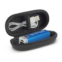 2600mAh power bank with an LED power gauge and a smart aluminium finish. The input power is 5V/500mA and the output power is 5V/1 Amp. It can be recharged in 4-5 hours from a USB port or a mains adapter. Comprehensive instructions and a Micro-B USB cable are included. An optional EVA carry case and a triple connector cable are available on request. Hypertron laser engraves to an oxidised white colour. Colours: Power Bank: Silver, Blue, Black. Carry Case: Black.
