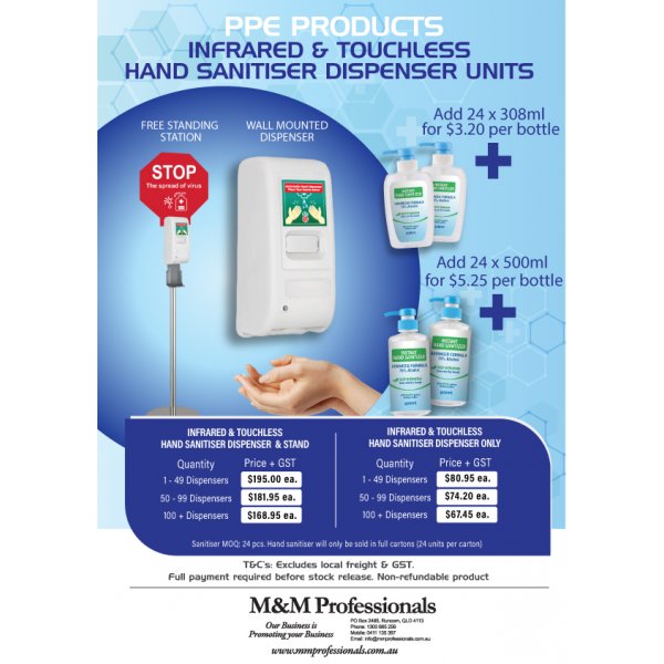 - Infrared touchless hand sanitiser dispensers only (no stand)