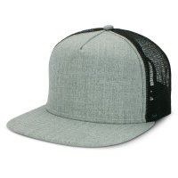 Premium structured five panel cap which is manufactured from polyester with a trucker style breathable mesh back. It has a trendy flat peak with a matching button. Other features include a sweat band and an adjustable snap back closure that allows one size to fit most people. Colours: Light Grey/Black. Size: One size fits most people.