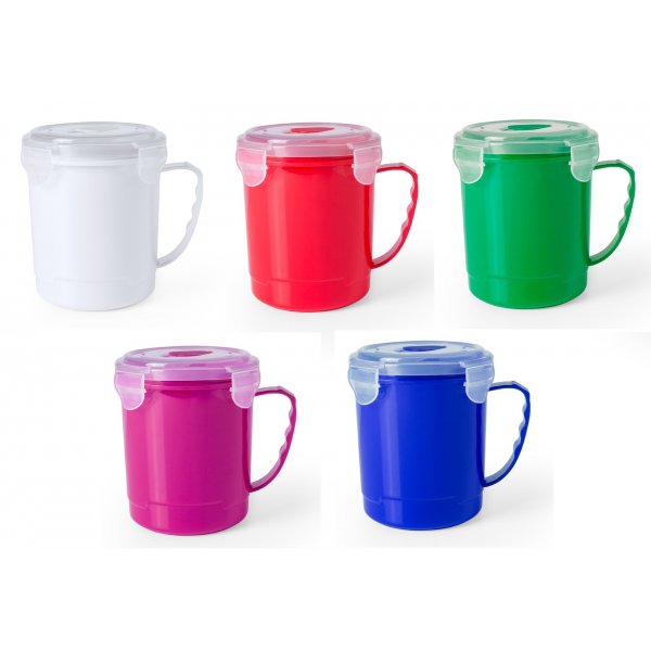 710ml jar in resistant PP. In a wide range bright colours with translucent cover with 4 closure. Inside safety ring and built-in sipper Matching colour ergonomic handle. Colours: White, Blue, Red, Green, Purple / Fuchsia, (black and orange are out of stock). Dimensions: 12.5 x 11.5 cm.