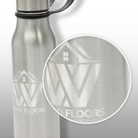 Smart 550ml BPA-free, double wall, vacuum insulated stainless steel drink bottle which will keep drinks cold for 24 hours or hot for up to 12 hours. It has a secure screw on stainless steel lid and a soft silicone carry handle. Jericho laser engraves to a natural etch and is presented in a black gift box or optional gift tube. This product is not dishwasher safe and handwashing is recommended. Colours: Silver. Dimensions: Dia 65mm x H 230mm. Gift Tube: Dia 78mm x H 259mm.