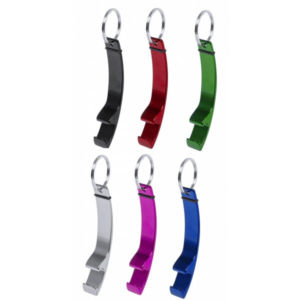 Keychain opener with aluminum body in variety of bright colours .Especially designed for laser printing. Colours: Black, Blue, Fuchsia, Green, Red, Silver. Dimensions: 0.9 x 7.9 x 1.5 cm.