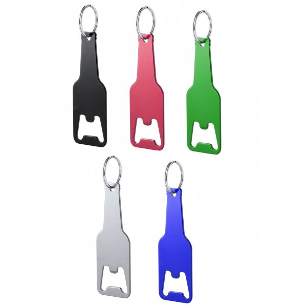 Bold design keychain opener with bottle design. Variety of vivd metallic colours. Especially designed for laser engraving. Colours: Black, Blue, Green, Red, Silver. Dimensions: 3 x 8.9 x 0.2 cm.
