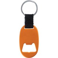 Aluminium bottle opener, bright anodised finish, with nylon strap and keyring. This bottle opener not only empowers you to open your beverages, but keeps your keys company as well. Being an accessory on a key ring, it's sure to go with your client everywhere. Imprinted with your message, it will keep your company's name in front of your client at all times. Colours: Blue, Charcoal, Orange, Red, Silver. Dimensions: 60 x 35 x 2mm.