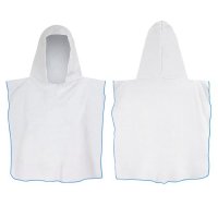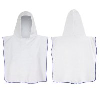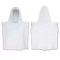Kids size hooded towel which is ideal for staying warm and dry after swimming or at the beach. It is manufactured from soft 250gsm microfibre and can be branded on one side with edge-to-edge full colour print. There is a choice of eight overlocking thread colours. A production lead time of 30 working days applies to this product by air freight and larger orders can be sea freighted on request to reduce the freight cost. Colours: Overlocking - White, Grey, Red, Green, Light Blue, Royal Blue, Purple, Black. Dimensions: W 600mm x H 600mm (when worn, excludes hood).