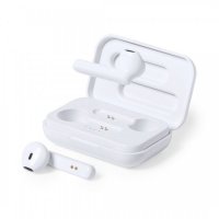 Antibacterial earphones with Bluetooth® 5.0 connection in an elegant white color design in glossy finish. Ergonomically designed, including an integrated, touch control button in the earphone, with matching color charging base. Hands free function and rechargeable micro USB cable included. Presented in an individual deluxe case with hinged cover and in an attractive design box. Products with antibacterial treatments are able to drastically reduce the bacterial levels present on the surfaces of the materials, thanks to the addition of permanent static microbial agents, with high effectiveness in inhibiting and preventing bacterial contamination. Item according to the ISO 22196 standard, which determines the antibacterial activity in plastic materials and non-porous surfaces. This allows us to know the effectiveness of microbial inhibition that additives have on treated objects by means of a quantitave evaluation. Bluetooth Connection. USB Rechargeable. Cable Included . Colours: White. Dimensions: 4.5 x 6.8 x 2.2cm - 40 grams.