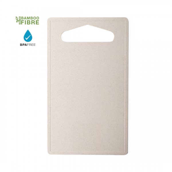 Kitchen cutting board in resistant bamboo fibre material. Colours: Natural. Dimensions: 14 x 23.8 x 0.4 cm.