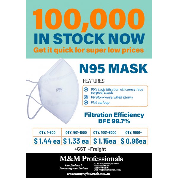 Protect your health and respiratory system from harmfull virus / bacterias through contacts and droplets with this KN95 Disposable Face Mask. Bacterial Filtration Efficiency is greater than 95%. Colour: White. Dimensions: 160 x 105mm