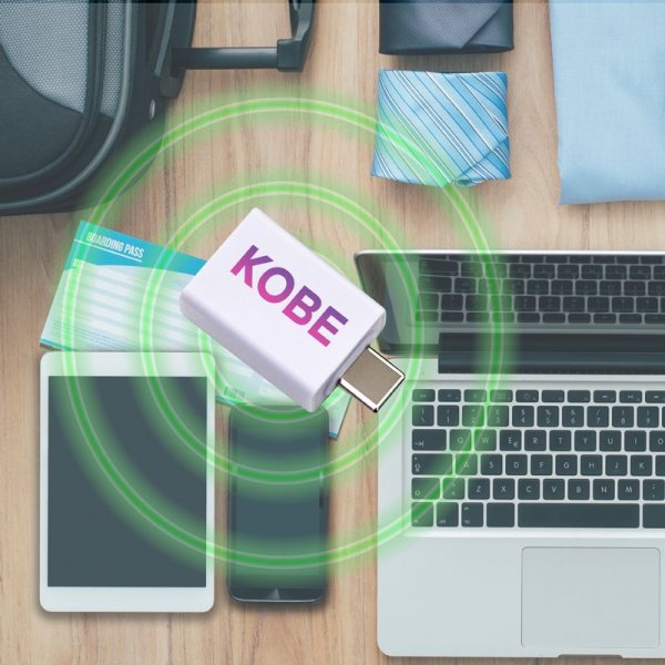 The Kobe Data Blocker protects your smart phone or tablets from any unwanted data transfer and without the risk of hacking or the uploading of viruses while charging. Just plug the Type-C to Type-A data blocker into any Type-C charge port before plugging your charge cable in between the data blocker and your device to start charging. Includes standard backing card with instructions or custom-designed cards. Colours: Black, White. Dimensions: 35 x 19 x 11 mm.