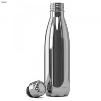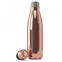 Trendy design of 500ml BPA free stainless steel vacuumed double wall drink bottle with stunning shiny UV lacquer finishing made of 304 grade stainless steel high quality leak proof with a matching stainless screw on lid engraves to a natural silver etch colour. It keeps drinks cold for 24 hours or hot for up to 12 hours handwashing is recommended. Colours: Gunmetal, Rose Gold, Silver. Dimensions: 260mmH x 72mmD, 500ml.