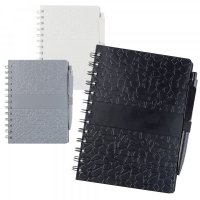 This stone PP hard cover spiral notebook features a durable hard cover made from 50% polypropylene (PP) and 50% calcium carbonate, with a sturdy 2mm thickness. Inside, you'll find 70 sheets (120 pages) of eco-friendly stone paper. Designed for convenience, it includes an elastic band to hold the included stone pen. This notebook is perfect for everyday use, combining durability with environmental responsibility and offering a smooth writing experience ideal for students, professionals, and creatives alike. Colours: Black, Grey, White. Dimensions: 178mmW x 127mmH x 12mmD.