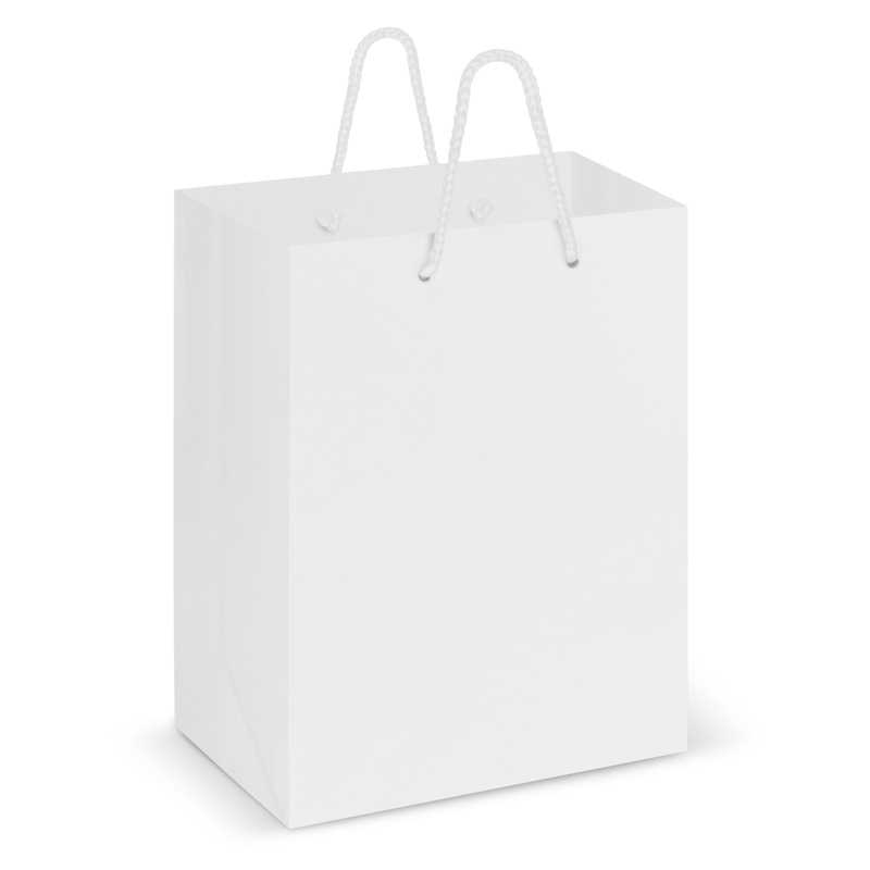 Medium paper carry bag with strong woven polyester handles. It is manufactured from smart 157gsm laminated art paper.
