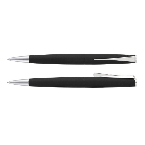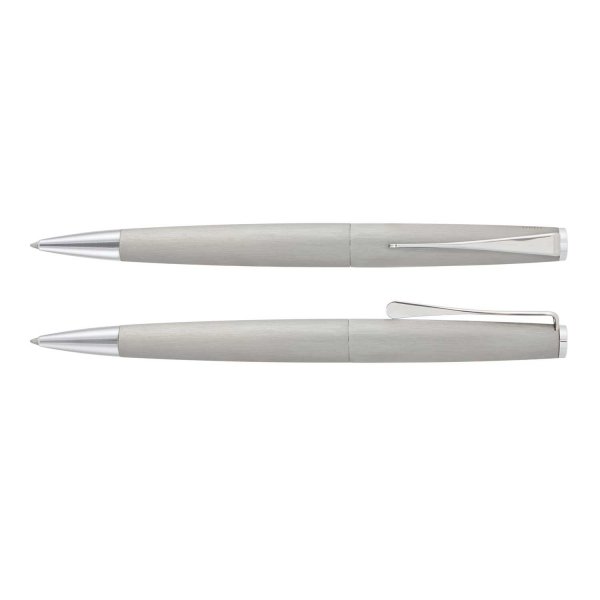 Elegant twist action ball pen with the choice of a brushed stainless steel barrel and a heavy brass barrel with matt finishes. This stunning pen features a unique propeller inspired clip with matching shiny chrome accents. It has a black LAMY M16 refill with 8000 metres of writing ink and a tungsten carbide ball for improved writing quality. STUDIO is 100% made in Germany with the LAMY brand tastefully inscribed on the upper barrel and it is beautifully presented in a LAMY gift box. The stainless steel barrel laser engraves to a natural etch and the heavy brass barrel laser engraves to a mirror finish.