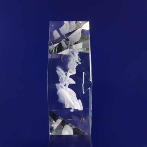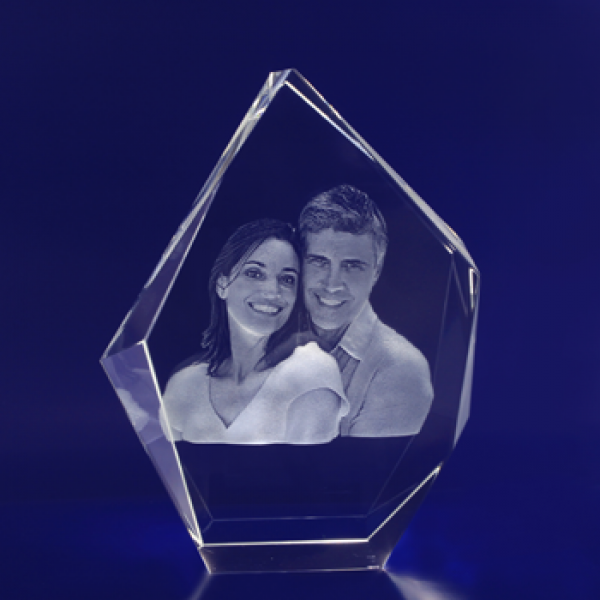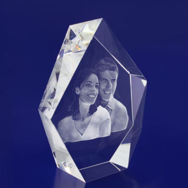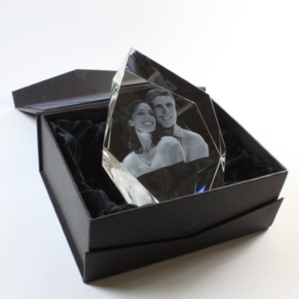 The large prestige sits at the top of our optical crystal range. its unique design makes it really stand out from the other more traditional shapes. Create that extra bit of wow factor with your favourite photo converted to 3D and engraved inside. The Large Prestige 3D Crystal pride of place in any home or office. Size: (H)170mm x (W)130mm x (D)60mm Size suits upto 6 people 3D conversion is extra and is charged per face. Text is additional.