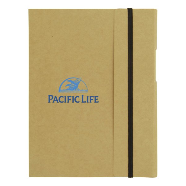 A larger version of our T-934 Small Tuck Journal. The Large Tuck Journal notebooks come with a heavy flexible paper cover made from recycled paper and have 85 pages of recycled lined paper. Other features include a blank black ink pen made from recycled paper and an elastic band to keep the notebook closed. The inside cover and each page have the recycled logo in the corner. Item cover is made from 100% recycled material. Colour/s: Blue or Tan Dimension: 165mm w x 210mm h.