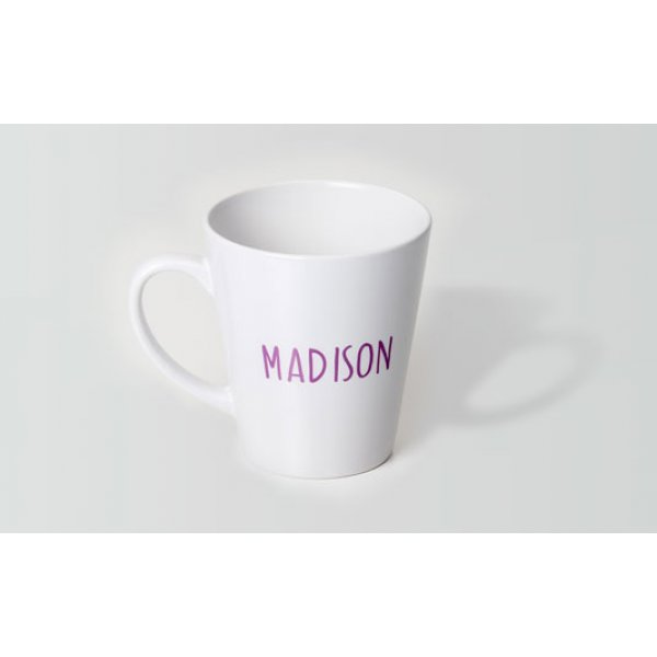 The stylish, conical-shaped Latte dye sub mug provides the perfect background for your colourful advertising. Colours: White. Dimensions: H 102 mm x D 94 mm.