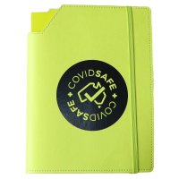 Prepare for the return to work life with this 80-page stationary staple. Featuring a gorgeous leatherette cover, this Dual Notebook is the perfect addition to your desk, offering a generous space for branding. Colours: Red, Orange, Lime Green, Blue, Aqua, Black. Dimensions: 156mm w x 215 mm h.