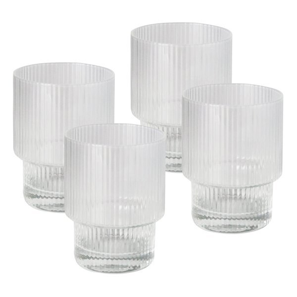 Lend an air of vintage sophistication to your next dinner party with the Linnea Ribbed Glass Tumbler. Made from fluted glass, these glass tumblers are sure to elevate your table and be the envy of all your dinner guests. As these glasses are hand blown, please allow for minor imperfections and differences between glasses. The Linnea Ribbed Glass Tumblers come in a set of 4 and are a perfect option for corporate gifting and hampers. Colours: Clear. Dimensions: Glass 90mm H x 67mm in dia. Gift box top 368mm W x 97mm H.