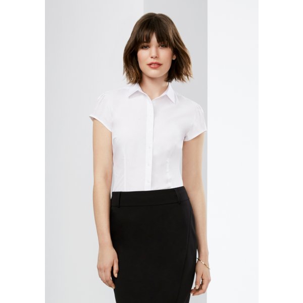- Ladies Shirt has been designed with gathered detail at sleeve and back for a fashionable twist on an otherwise classic shirt