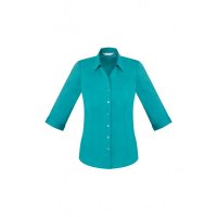 - Ladies has a chic Y-line piped placket and an elegant French style cuff that can be turned back for a modern feminine look