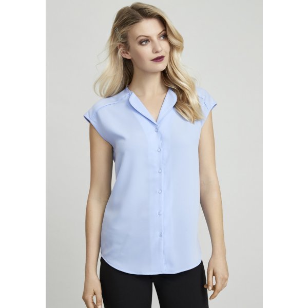 - A practical interpretation of the classic sleeveless blouse that offers more shoulder coverage