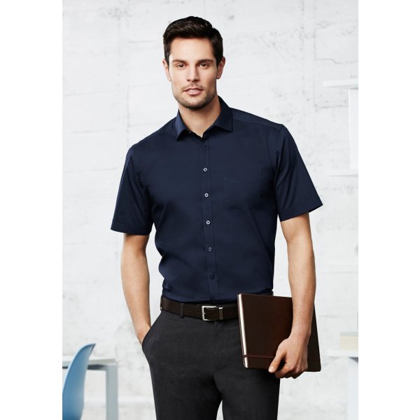 - Mens classic fitting shirt has back shoulder pleats for added movement
