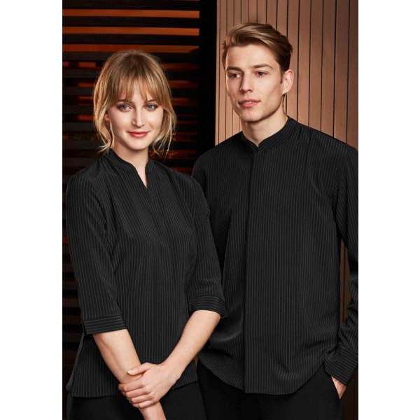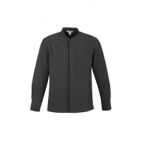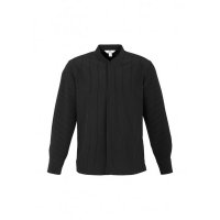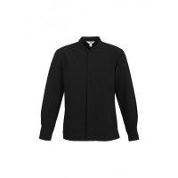 - Mandarin collar with concealed button placket