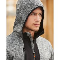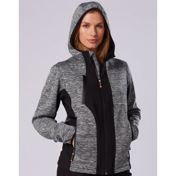 Laminated Fleece Fabric for added weather proofing and comfort. Outer main fabric is heather feature knit. Bonded fleece lining. Contrast soft shell panels. Stretch hems for cuffs, waistband & hoodie edge. Side zip security pockets. Mobile secure pocket. Colours: Marl/Grey/Black. Sizes: 8, 10, 12, 14, 16, 18, 20, 22, 24/26, 28/30