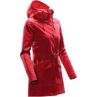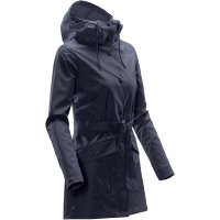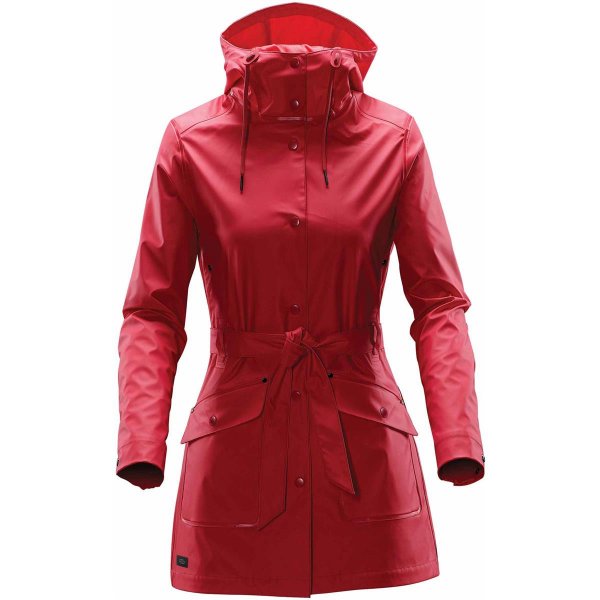 This great fitting, mid-length and fully lined waterproof raincoat with a matte finish is a go-to piece for any urban environment. Features include ultrasonically welded waterproof seams for permanent wet weather protection. Additional features include flapped snap closure hand pockets, adjustable snap cuffs and snap back yoke and a stylish self-fabric waist belt keeping you protected from the elements and looking great. Colours: Black, Navy, Raspberry. Sizes: one size fits most women.