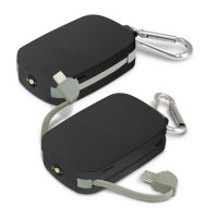 Compact 1200mAh emergency power bank with a handy carabiner and a three function LED light. It will charge almost any smartphone and has built-in cables with a Type-C connector and a unique double-sided connector with Lightning on one side and Micro-B USB on the other. Lucent has an input power of 5V/1A, an output power of 5V/1A and a handy LED power gauge. It can be recharged from a USB port or a mains adaptor. Lucent is presented in a white box with a Micro-B USB cable for charging and an instruction leaflet. Colours: Black, White. Dimensions: W 45mm x L 66mm x H 17mm (excluding carabiner).
