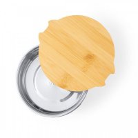 800ml capacity lunch box, made in stainless steel. With airtight hermetic lid in bamboo and elastic closure band. Presented in an individual box with kraft design. Colours: Natural. Dimensions: 75mm x 16.5 mm, 230 gram.