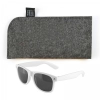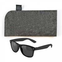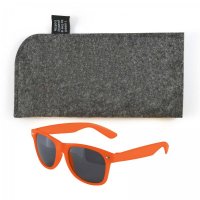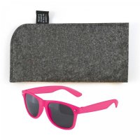Lux sunglass pack with RPET felt sunglasses pouch with polycarbonate frame sunglasses with tinted lenses. Colours: Sunglasses: White, Yellow, Orange, Red, Pink, Purple, Green, Light Blue, Dark Blue, Black. Grey pouch. Dimensions: pouch 180 x 90 x 4mm (LxWxH).