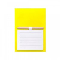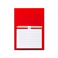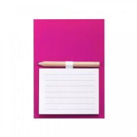 Magnet lined notepad in resistant cardboard of bright and varied colours. Colours: Blue, Fuchsia, Green, Orange, Red, White, Yellow. Dimensions: 9.9 x 14 cm.