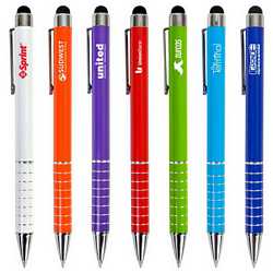 Aluminium twist action compact pen with clip and stylus. Ballpoint pen with black German ink refill and TC ball. Colour/s: Purple, Blue, Cyan, Orange, Red, Black, Lime or White. Dimension: 140mm long.