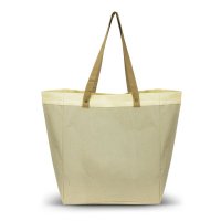 Extra-large tote bag with a gusset which is ideal for carrying bulky items. It has long woven carry handles so it can be comfortably carried on a shoulder and they are secured with brass rivets for added strength. Market Tote is manufactured from laminated natural linen with unbleached natural calico trim around the top. Colours: Natural. Dimensions: H 420mm x W 370mm x Gusset 200mm (excludes handles). Handle Length: 700mm.