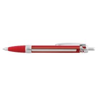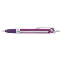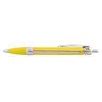 Retractable plastic ballpoint pen with a spring-loaded banner which can be branded in full colour on both sides. The pen has a soft rubber grip, metallic plastic trim, and 1200m of blue or black German manufactured Dokumental ink. A production lead time of 40 working days applies to this product by air freight and larger orders can be sea freighted on request to reduce the freight cost. Colours: White, Yellow, Orange, Red, Green, Blue, Purple, Black. Dimensions: dia 13mm x L 147mm x 16mm (includes clip).