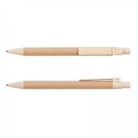 - Cardboard barrel ballpoint pen with a 50/50 blend of wheat fibre and polypropylene button, clip and tip