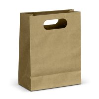 Medium-sized paper carry bag made from 180gsm FSC-certified materials with die cut handles. The handles and gusset are reinforced with 600gsm card for added strength. This bag is portrait orientated with handles and gusset along the shorter edges. Colours: Black, Natural, White. Dimensions: H 276mm x W 214mm x Gusset 100mm.