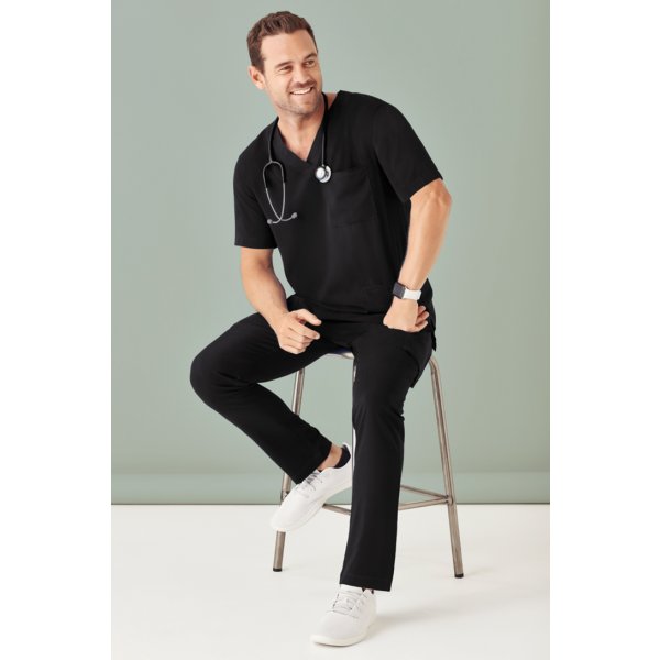Straight leg scrub pant with all the extras. Cargo style pockets for all your tools. Elastic waist and draw string closure. Colours: Midnight Navy, Electric Blue, Charcoal, Black, Teal, Navy. Sizes: XS - 5XL.