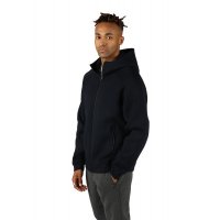 - hood, high neckline for premium look