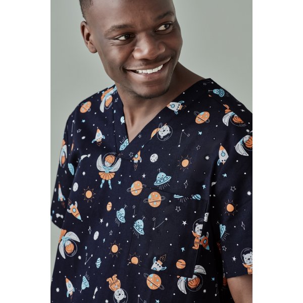 A classic printed scrub top that can be paired back with any Midnight Navy base with a fun but subtle print to ensure any branding still stands out.