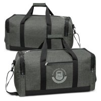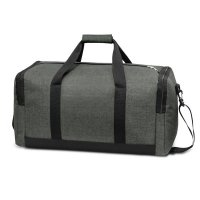 Carry on size duffle bag which is manufactured from poly-canvas with an on-trend heather style finish. It has woven carry handles with a Velcro cuff and an adjustable woven shoulder strap which is removable. Other features include two zippered end pockets, a zippered side pocket and a tough 600D polyester base. Colours: Grey.