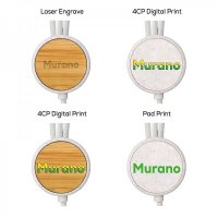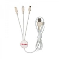 The Murano charge cable provides a patented dual Type-C and USB input connector with Type-C, 6 Pin iOS and Micro USB output connectors. This cable is manufactured from degradable corn & wheat straw, with an option for a contrasting bamboo insert, TPE and high quality 24 AWG copper for quicker charging. In addition, the Murano is packed in a recycled kraft box that can be customised to enhance your brand further. Suitable for all mobile devices, including smartphones, earbuds and power banks. Colours: Natural. Dimensions: Cable Retainer: 34 dia. x 8 mm; Cable Length: 120 cm.