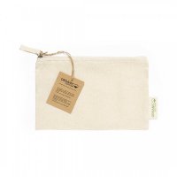 Pencil case made of 100% organic cotton material 180g/m2, in a natural tone. GOTS certified (Global Organic Textile Standard) which guarantees that the fabrics are made from organic fibres. Zip closure with matching puller and eco emblem on outside label. Including recycled cardboard hangtag with eco label. Colours: Natural. Dimensions: 21 x 12.5cm - 18 grams.
