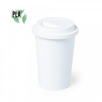 Nature line cup, made of 100% compostable PLA. 450 ml capacity, in a solid finishing and with security lid in self material, BPA free. Product made of PLA material, from renewable raw materials, with important properties such as versatility and resistance, highlighting among them the compostability. This product is not microwaveable. Hand wash only. Colours: White. Dimensions: 13.4 x 9.3 cm.
