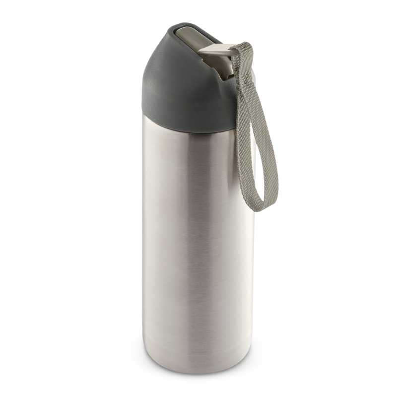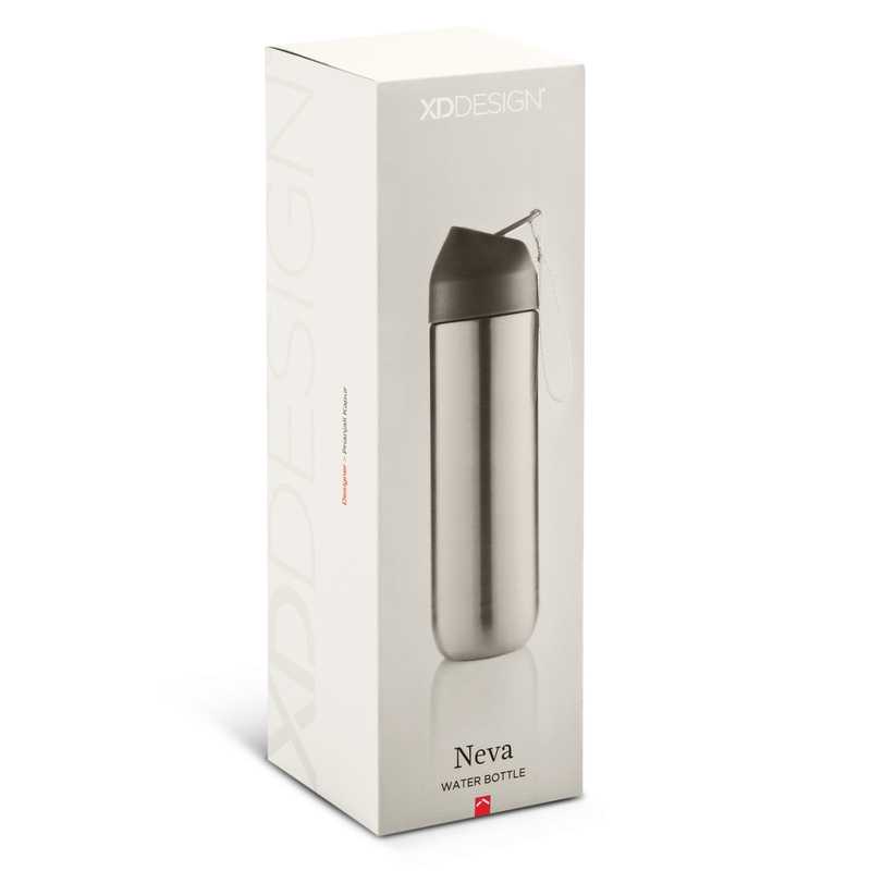 Exceptional 500ml BPA-free stainless steel water bottle from XD which has a secure screw on lid with a woven carry strap that acts as a quick release for the flip out drinking valve. The bottle laser engraves to a natural etch and is nicely presented in an XD gift box. This product is not dishwasher safe and handwashing is recommended.