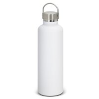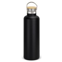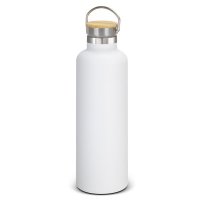 Robust 1L stainless steel, vacuum insulated drink bottle BPA free with a tough powder coated finish. The bottle features a stainless steel screw on lid with a convenient carry handle and the option of a bamboo panel. The bottle is presented in a black gift box. Hand wash is recommended, and dishwashing use is not safe. Colours: Black, White. Dimensions: Bottle: Dia 85mm x 285mm. Gift Box: H 310mm x W 90mm x 90mm.