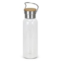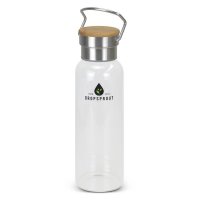 Classic 600ml borosilicate glass drink bottle. Borosilicate is lightweight, exceptionally strong and is shatter-resistant. The bottle features a secure screw on lid with a convenient carry handle and a natural bamboo panel. An optional gift tube is available for presentation. Not suitable for carbonated or hot liquids. Handwash is recommended. Colours: Clear. Dimensions: Bottle: Dia 71mm x H 235mm. Gift Box: H 255mm x W 76mm x 76mm.