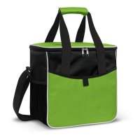 Impressive large 18L cooler bag with thick PE foam insulation encased in a waterproof PEVA inner liner. The outer construction is 600D polyester with a large front slip pocket and two mesh side pockets. Other features include a zippered top closure, an adjustable woven shoulder strap and woven carry handles with a Velcro cuff. Colours: Yellow, Orange, Red, Bright Green, Light Blue, Royal Blue, Black.